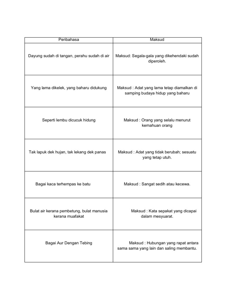 Adat yang lama tetap diamalkan di samping budaya hidup yang baharu. Orang lelaki yang merisik bakal isterinya. Menang menjadi arang, kalah menjadi abu. Seperti lembu dicucuk hidung maksud : Peribahasa adalah susunan perkataan yang mengandungi maksud tersirat dan yang lahir daripada cetusan fikiran orang melayu dahulu. Adat yang lama tetap diamalkan di samping budaya hidup yang baharu. Bagai kaca terhempas ke batu : Orang lelaki yang merisik bakal isterinya. Yang lama dikelek, yang baharu didukung maksud : Orang yang selalu menurut kemahuan orang. Adat yang lama tetap diamalkan di samping budaya hidup yang baharu. Yang lama dikelek, yang baharu didukung maksud : Beruang matahari lama dikelek, panda yang baharu didukung.