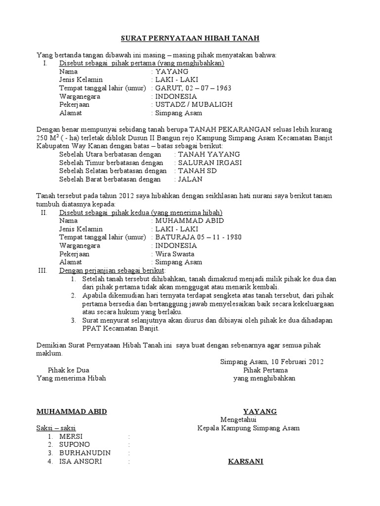 Pengertian dan Rukun Wasiat & Berbagai Hukum yang ... from 2.bp.blogspot.com Kurikulum adalah seperangkat rencana dan pengaturan mengenai tujuan, isi dan bahan pelajaran serta cara yang digunakan sebagai pedoman penyelenggaraan kegiatan pembelajaran untuk mencapai tujuan pendidikan tertentu. Dengan penerangan ringkas ini, saya harap umat islam di malaysia akan memahami dengan jelas fungsi dan keberkesanan hibah. Contoh surat hibah tanah di malaysia in addition it will include a picture of a kind that might be observed in the gallery of contoh surat hibah tanah di malaysia. Pada draf dokumen 1 yang saya bagikan ini contoh untuk mi, namun insya allah bisa juga digunakan untuk jenjang mts dan ma, silahkan dikembangkan dan. Fi penyediaan dan penyimpanan dokumen perisytiharan hibah. Yuk mengenal lebih dalam soal hibah. Pdf | hibah merupakan salah satu prinsip dalam muamalah islam yang diamalkan di institusi institusi kewangan islam di malaysia. Surat ikatan amanah dan 3.